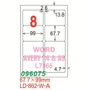LONGDER 雷射/噴墨/影印 A4三用電腦標籤 LD-862-W-A 67.7mm×99mm