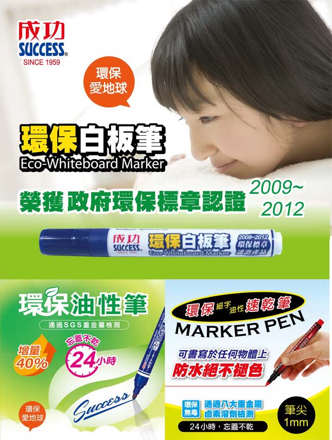 成功 環保標章酒精性白板筆 1307 藍 2mm