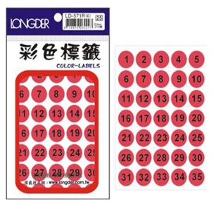 LONGDER 彩色1-35數字標籤 LD-571 16mm 螢光綠