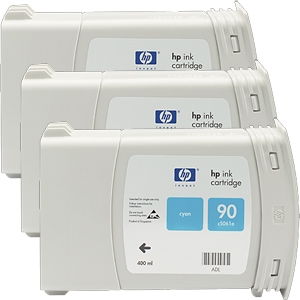 HP 原廠繪圖機墨水匣 NO.90 C5083A 青 三入