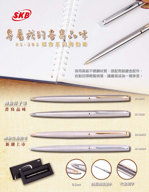 SKB 都會系列自動鉛筆 RS - 305CP 0.5mm 金 附盒