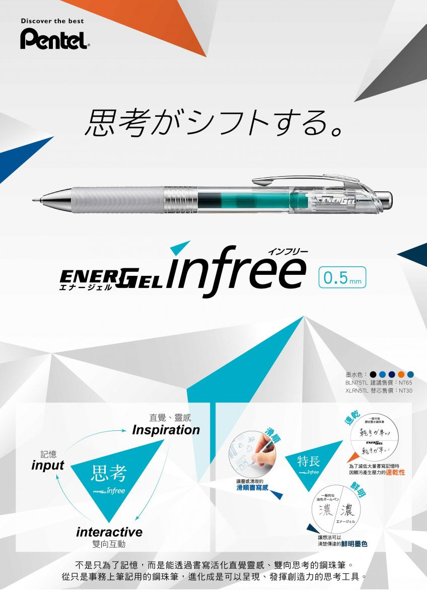 Pentel ENERGEL infree 按壓式極速鋼珠筆 BLN-75TL-C 0.5mm 藍 透明桿 [原BLN-75SW 白桿替代款]