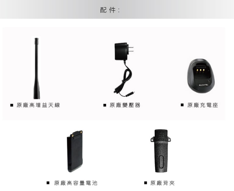 - .包裝配件:本體/天線/鋰電池/皮帶夾/充電器