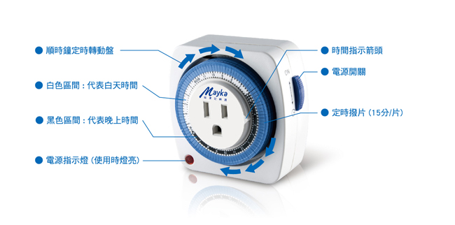 6. 使用定時功能時,開關請調至時鐘圖位置