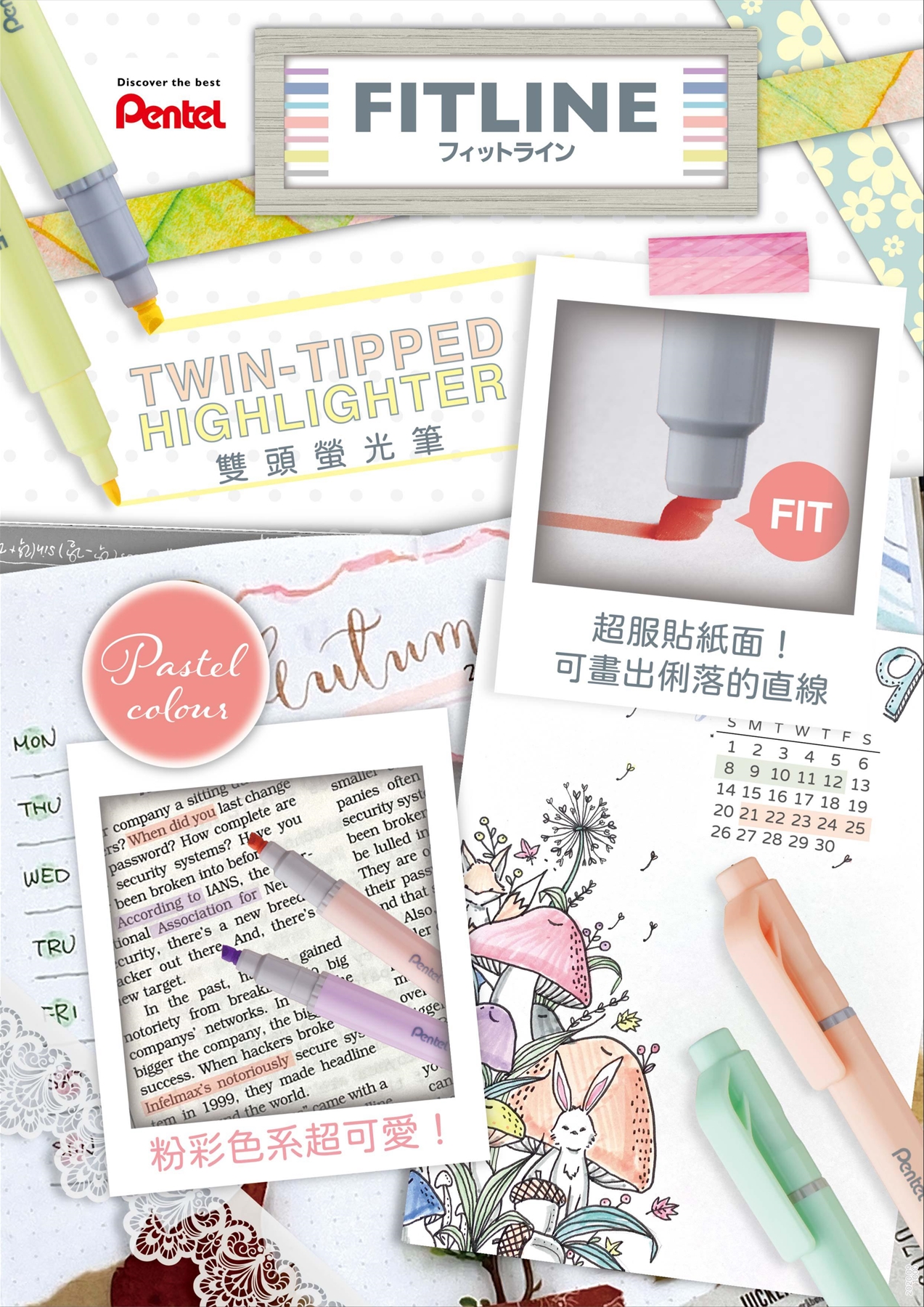 - ●FIT 是雙頭筆尖的螢光筆,有細字與粗字的筆尖可依需使用。