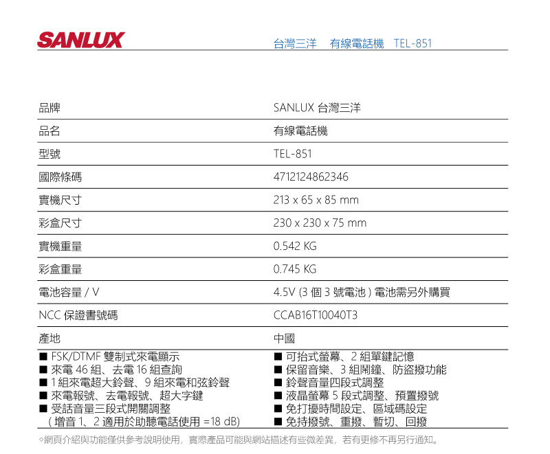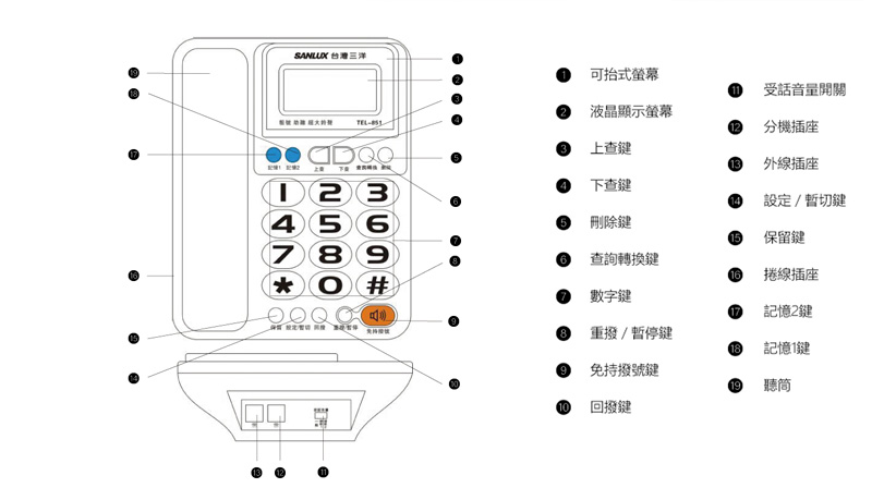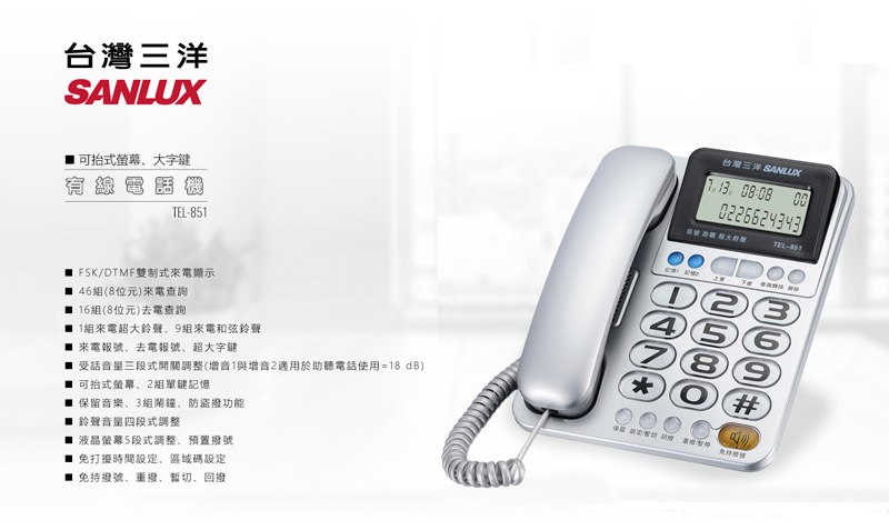 SANLUX 電話機 TEL-851 銀色