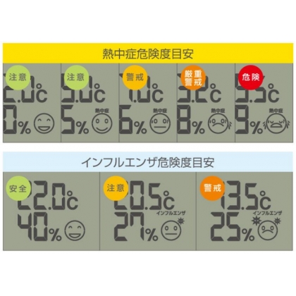 ‧流感警示功能:本產品依照每一平方公尺空氣中含有之水蒸氣量(濕度) 推算流感警示指標, 測量僅供參考,實際請依國家與專家建議為主