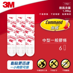 3M Command 中型無痕膠條 17021 6片入 [原136082替代款]
