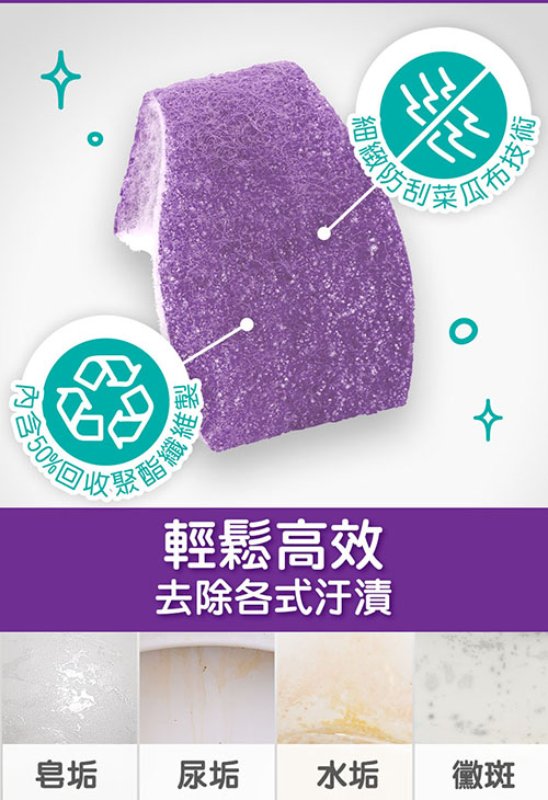 - ‧防刮細緻菜瓜布材質,不傷馬桶釉面,馬桶不易卡垢變黃