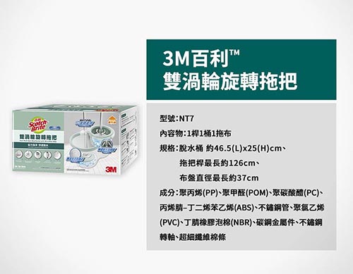 3M Scotch Brite 雙渦輪旋轉拖把 T7 1桿1桶1拖布
