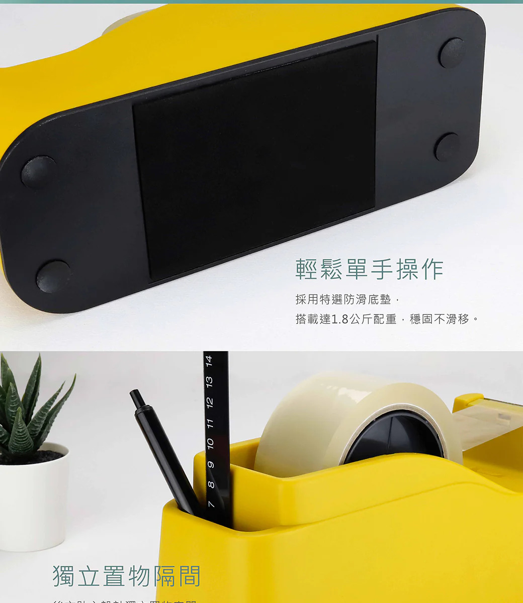 - ‧獨立雙輪軸,可放兩捲1吋寬文具膠帶或一捲2吋寬封箱膠帶
