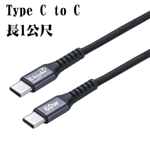 E-books 鋁製Type C to C 60W充電傳輸線 XA59 1M