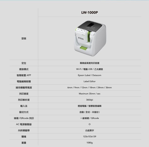 EPSON 產業專用高速網路條碼標籤機 LW-1000P