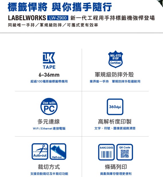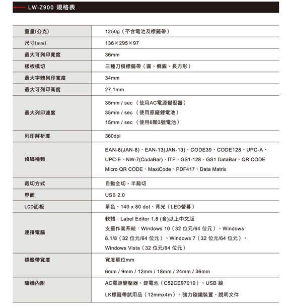- 適用6mm-36mm LK型號標籤帶(不適用LC型標籤帶)