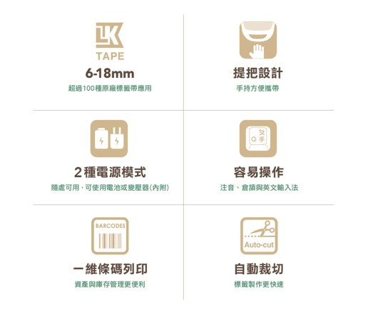 - 適用6mm-18mm LK型號標籤帶(不適用LC型標籤帶)