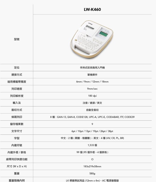 - 內附:12mm 白底黑字耐久型試用帶一捲